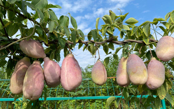 此外,团队通过大量基础研究,发现八月瓜不仅口味清甜软糯,其果实富含多种胶原蛋白、维生素、矿物质,尤其是以芳香族氨基酸为主体的游离氨基酸含量是常见水果的3-6倍,属于优质的食疗保健水果。