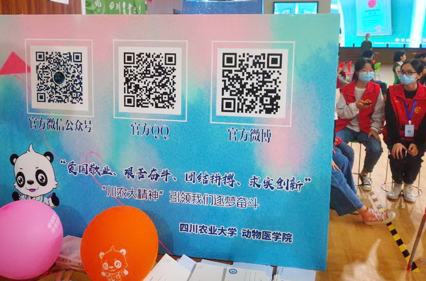 “同学你好,这是你的家长联系卡和一卡通,上边这个二维码,扫一扫,你可以了解咱们学校的灵魂——‘川农大精神’”。迎接2020级新生,动医学院没有“额外设计”,而是“川农大精神”教育融入到迎新的每个服务指引环节里。