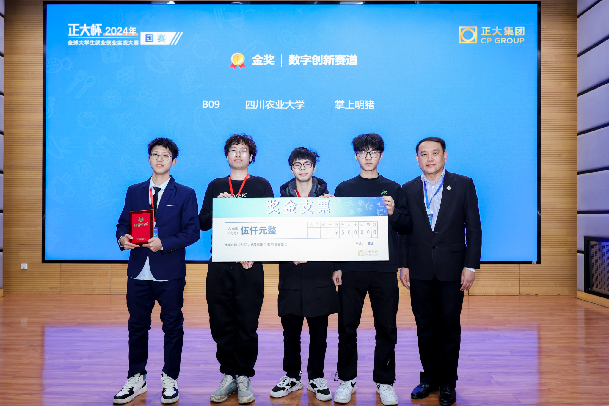据悉,“正大杯”国赛于1月13日至15日在北京举行,吸引了来自623所高校、18666支团队、超60000名学子参加。我校信息工程学院梁云森、陈彦宇、姚宇杰、朱柏宇4位同学组成的“掌上明猪”团队,在蒲海波教授指导下斩获数字创新赛道金奖(该赛道仅1个金奖)。“掌上明猪”团队的“通道数猪”项目通过引入人工智能技术,实现了通道数猪的智能化,能够大幅提升计数效率,减少人工操作误差,为养殖企业提供可靠的数据支持,助力智慧养猪全面升级。
