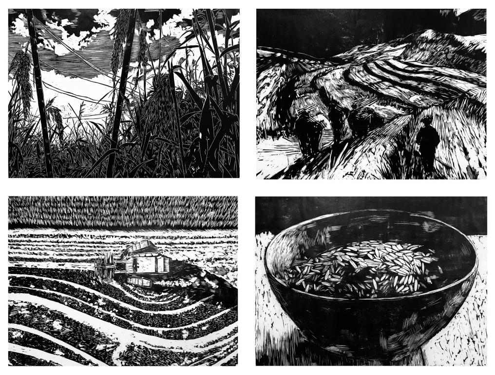 《禾下故事》胡余黑白木刻 尺寸:90*120cm