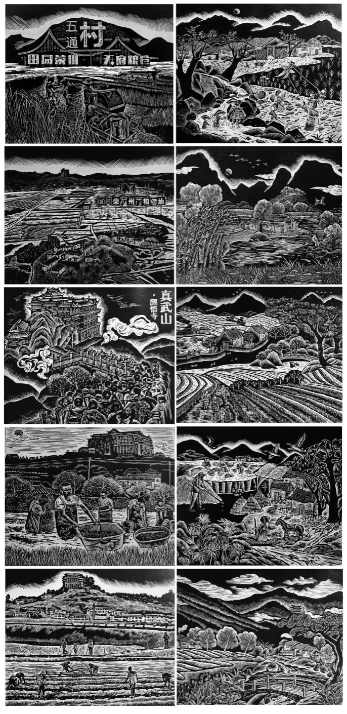 《丰收荣州绘振兴》谢晓笛黑白木刻 尺寸:30*36cm单张(10张)