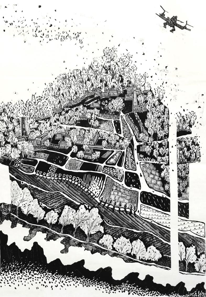 《思梨乡》马雪婷 黑白木刻 尺寸:68*98cm