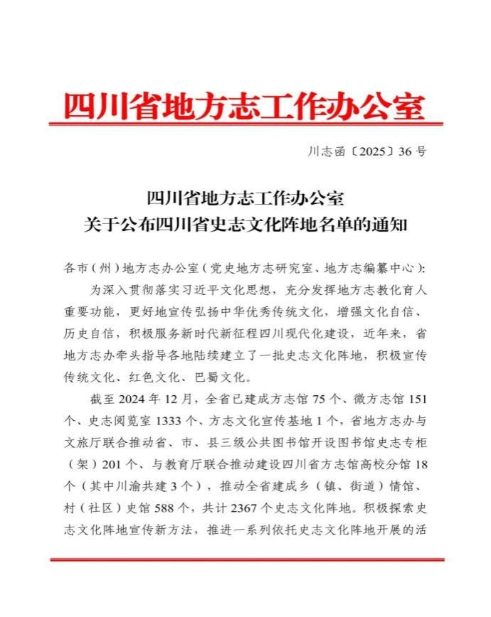 近日,四川省地方志工作办公室正式下发《关于公布四川省史志文化阵地名单的通知》,四川省方志馆四川农业大学分馆成功入选,成为全省首批建成的高校史志文化阵地之一。这一荣誉标志着我校在地方历史文化传承、推广、校史文化融合以及方志文化育人平台建设方面取得重要成果。