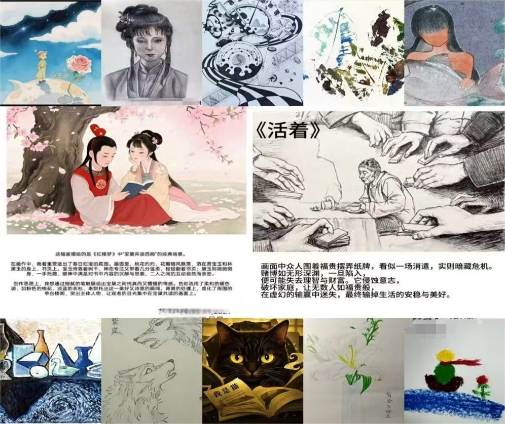该活动由“书语映像”视频创作、“墨香寻踪”经典阅读征文、“荟灵思之萃”知识竞赛、“彩韵绘梦”主题绘画和“青简拾句”五部分组成,以“读、写、绘、创、享”将阅读从个人体验衍生到群体共鸣,同学们或在经典著作中遨游,或在知识竞赛中体验思维的激荡,或在书籍视频创作中深刻感悟,或在亲手绘画中展现创意与想象。