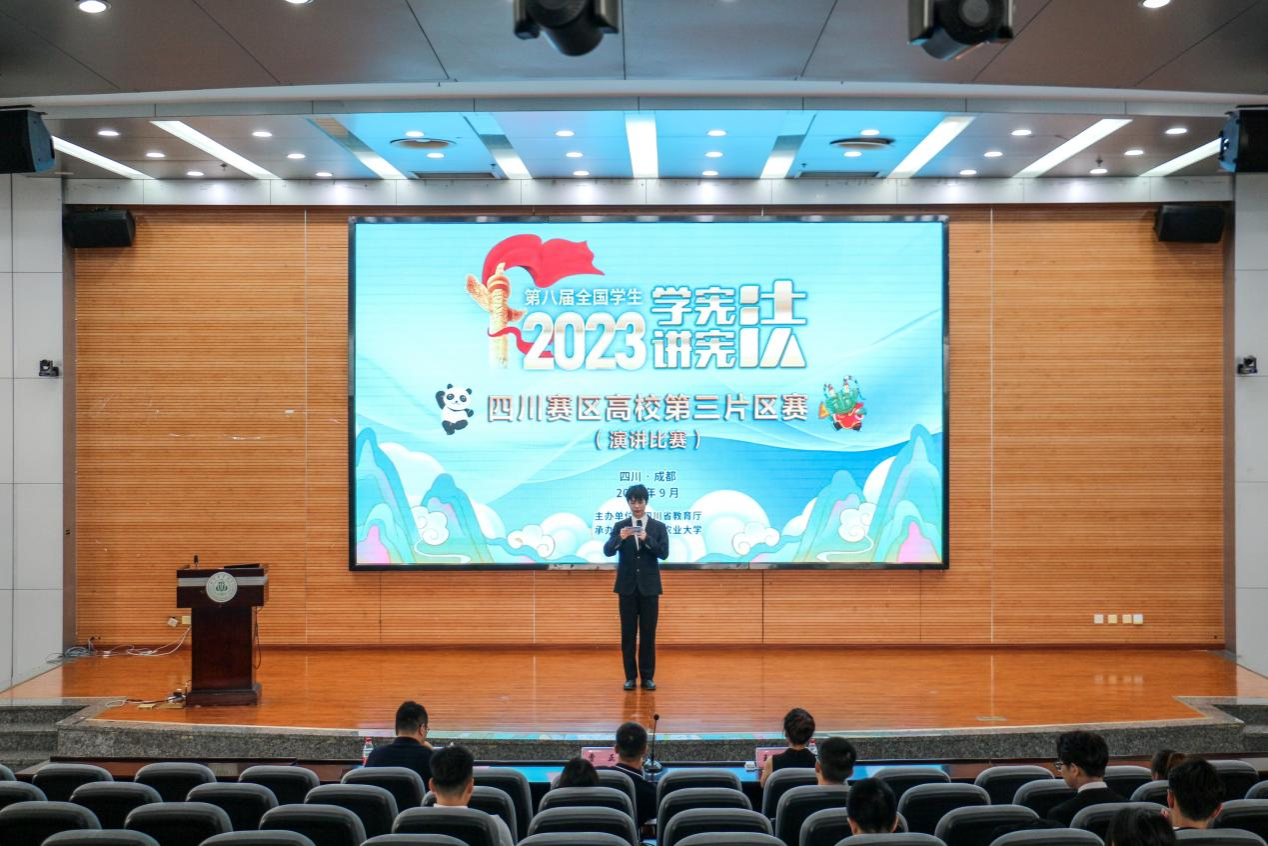 为全面学习宣传贯彻党的二十大精神,深入学习贯彻习近平法治思想,落实教育部和省教育厅工作部署,推动宪法学习常态化长效化,增强学生的宪法精神和法治素养,9月16日,第八届全国学生“学宪法 讲宪法”四川赛区高校第三片区赛在成都校区隆重举行,赛事由四川省教育厅主办、四川农业大学承办,学校党委宣传部、党委学生工作部、法学院及学生法律援助中心协办,此次比赛共有来自电子科技大学、四川农业大学、四川师范大学等17所高校的选手参赛。