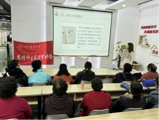 12月3日-4日,宣讲团副团长李军妍、成员尹勤分别走进雅安校区学生一站式社区、雨城区青江路社区开展“弘扬宪法精神,树立宪法权威”“宪法的力量,人权的保障”的宪法主题宣讲活动。李军妍分别从宪法日、宪法基本内容概述、宪法修正案以及宪法宣誓等角度展开介绍,深入浅出地阐释了宪法在国家治理和社会生活中的重要性,详细解读了近年来宪法修正案的内容。尹勤面向社区居民和干部讲解了宪法、老年人权益保障法,不仅让社区的老年人有所感悟,也激励了社区干部采取实际行动,助力宪法“活起来”、宪法精神“传下去”、人权保障“落实下去”。