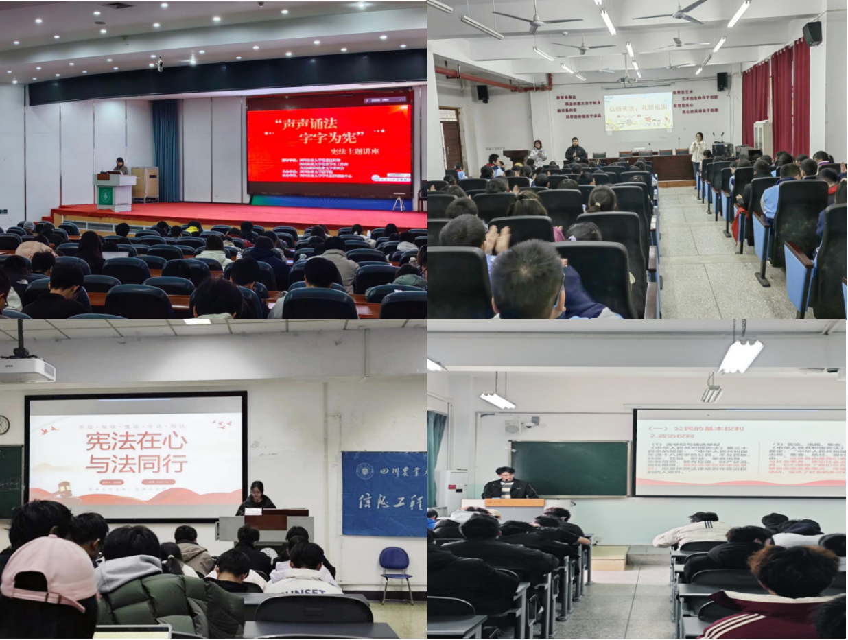 12月3日,宣讲团成员刘娜老师以“学习宪法、遵守宪法、维护宪法”为主题为雅安校区400余名同学开展了主题讲座。她以专业的知识和独特的视角,追溯了宪法的历史脉络,并重点分析了宪法中的公民权利保障条款,通过生动的案例和深入浅出的分析,让大家深刻领悟到了宪法的重要性。法学系教师李飞鸣面向学生法律志愿服务顾问团进行了宪法宣讲。宣讲团成员任佳佳、吉克拉布分别面向信工院、体育学院围绕宪法的原则和精神、宪法发展历程、宪法与法治等内容进行了详细宣讲。