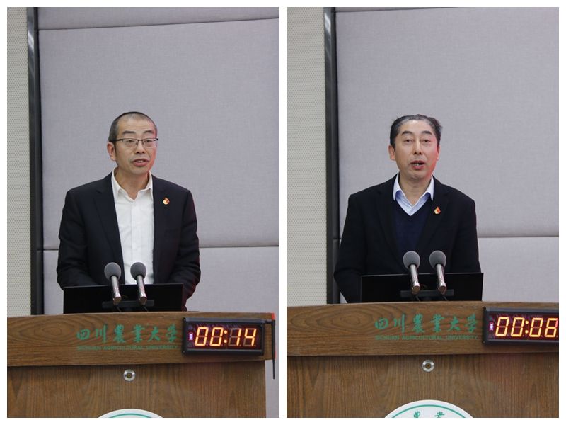 后勤管理处党总支书记何祖锋、动物医学院党委书记贾仁勇作经验交流。
