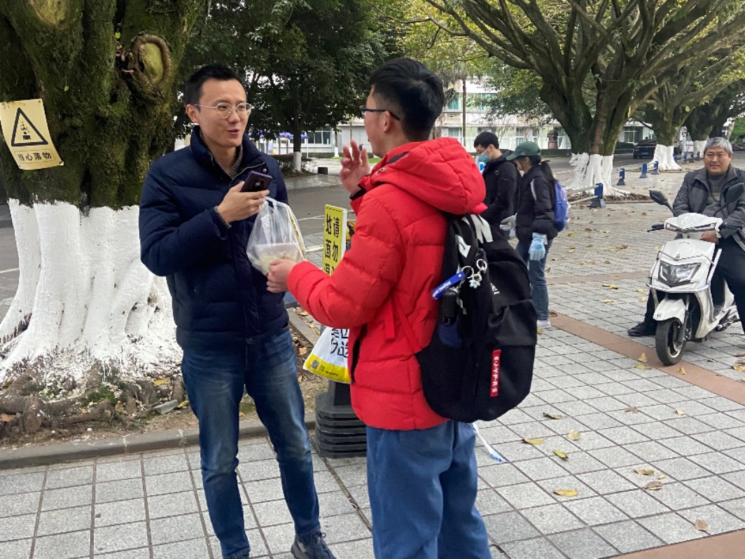 同学们热情地把第一锅饺子送给了老师和后勤保障人员,以此感谢他们一直以来的默默付出。