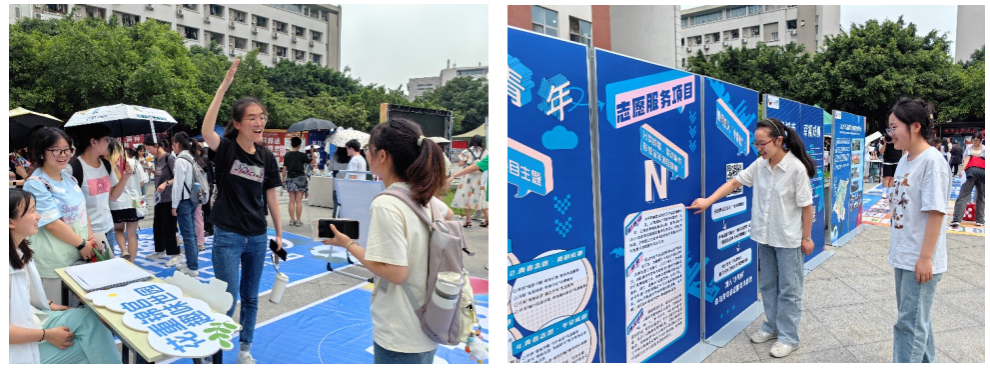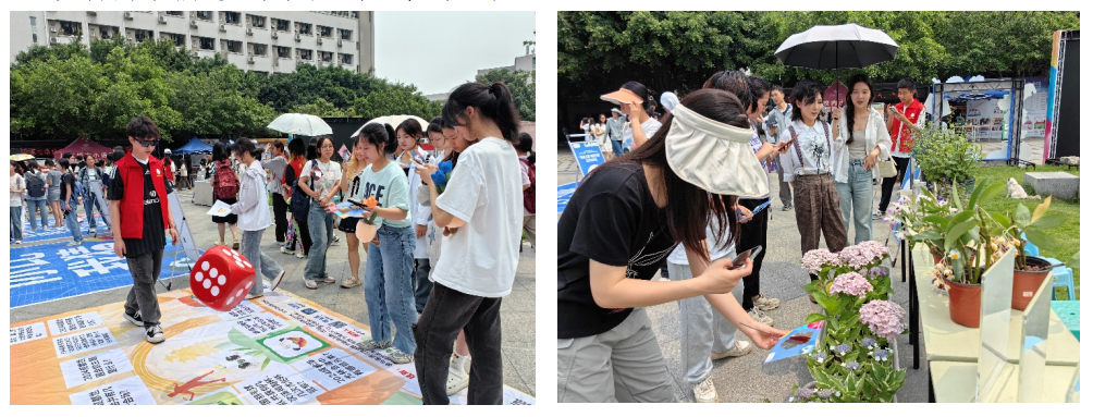 在游戏体验区,“园艺大富翁”“异形打卡拍照”“你比我猜”等闯关项目人流如织,大家在活动志愿者的协助下,通过完成看图识花、世园问答、晒图打卡等任务环节,加深对世园会的关注和认识;经过“青春志愿 幸福成都”展示区,可以看到“2024年成都世界园艺博览会”“2024年成都青年志愿服务”“公园城市 幸福成都”等主题展架,宣传推广成都世园会、青春志愿、幸福成都等主题内容,吸引同学们感知成都“花式”美好。