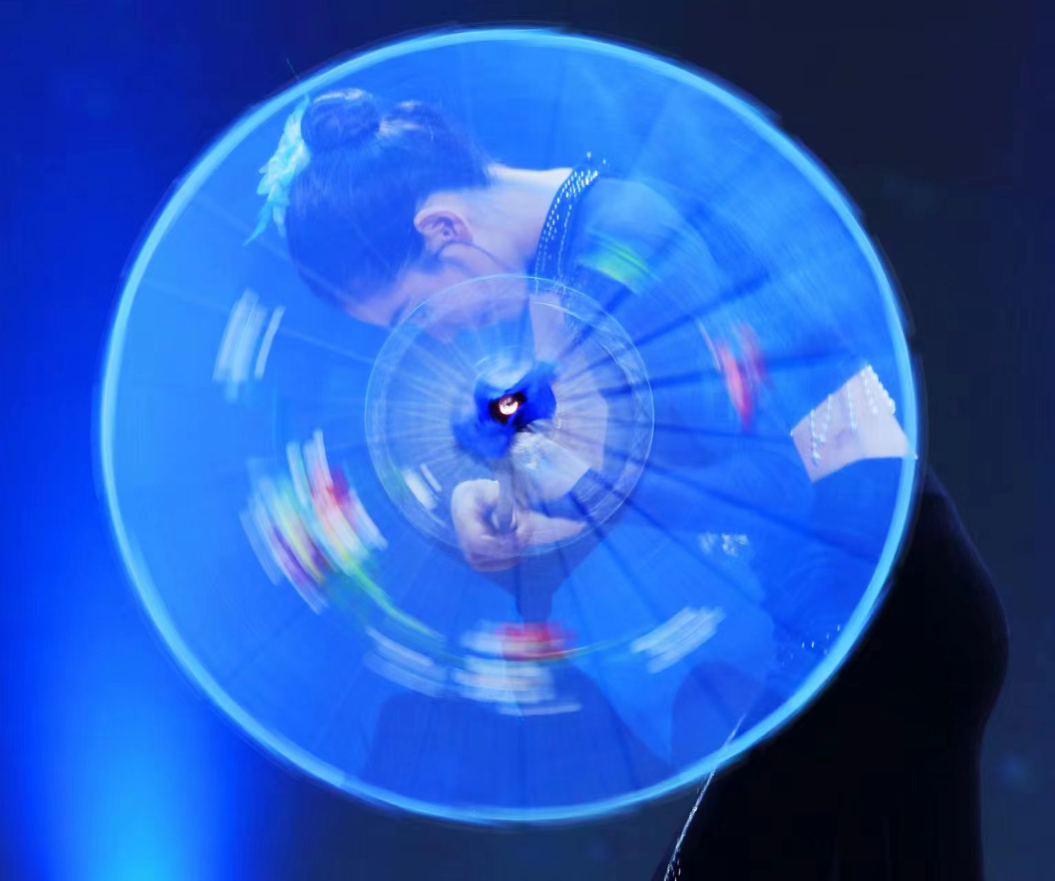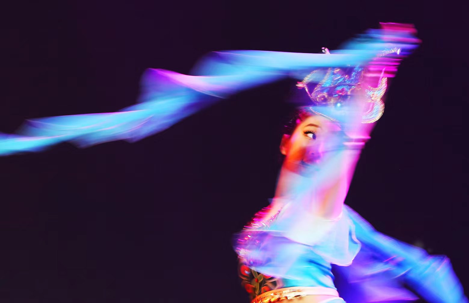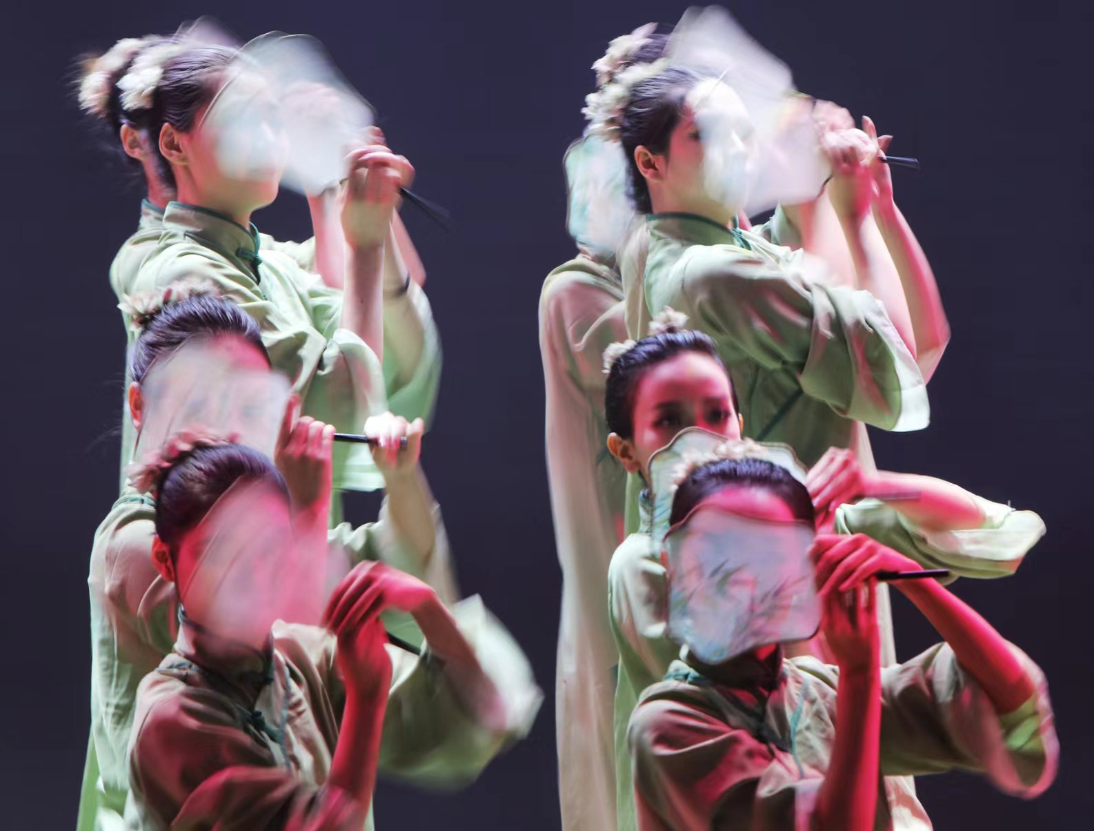 整场演出聚焦于我国文物流失问题,将身处异乡文物的思乡之情娓娓道来。“西北望长安,可怜无数山”,演出伊始第一篇章“梦·古韵”便紧紧吸引观众们的目光。古典舞《清风徐来》以清代《执扇就座仕女图》为创作蓝本,通过女子手持团扇的人物形象表现少女的温婉与灵动;胡旋双人舞《对影胡璇》将观众带入热情神秘的辽阔西域;傣族舞蹈《竹林掠影》,生动地表现出傣家姑娘在茂密的竹林中轻盈起舞的情景。海阳秧歌《溯跃》选取“鱼”的形象,同构“跃”的意象,寄语青年们踏沧浪而歌,逆流而上。