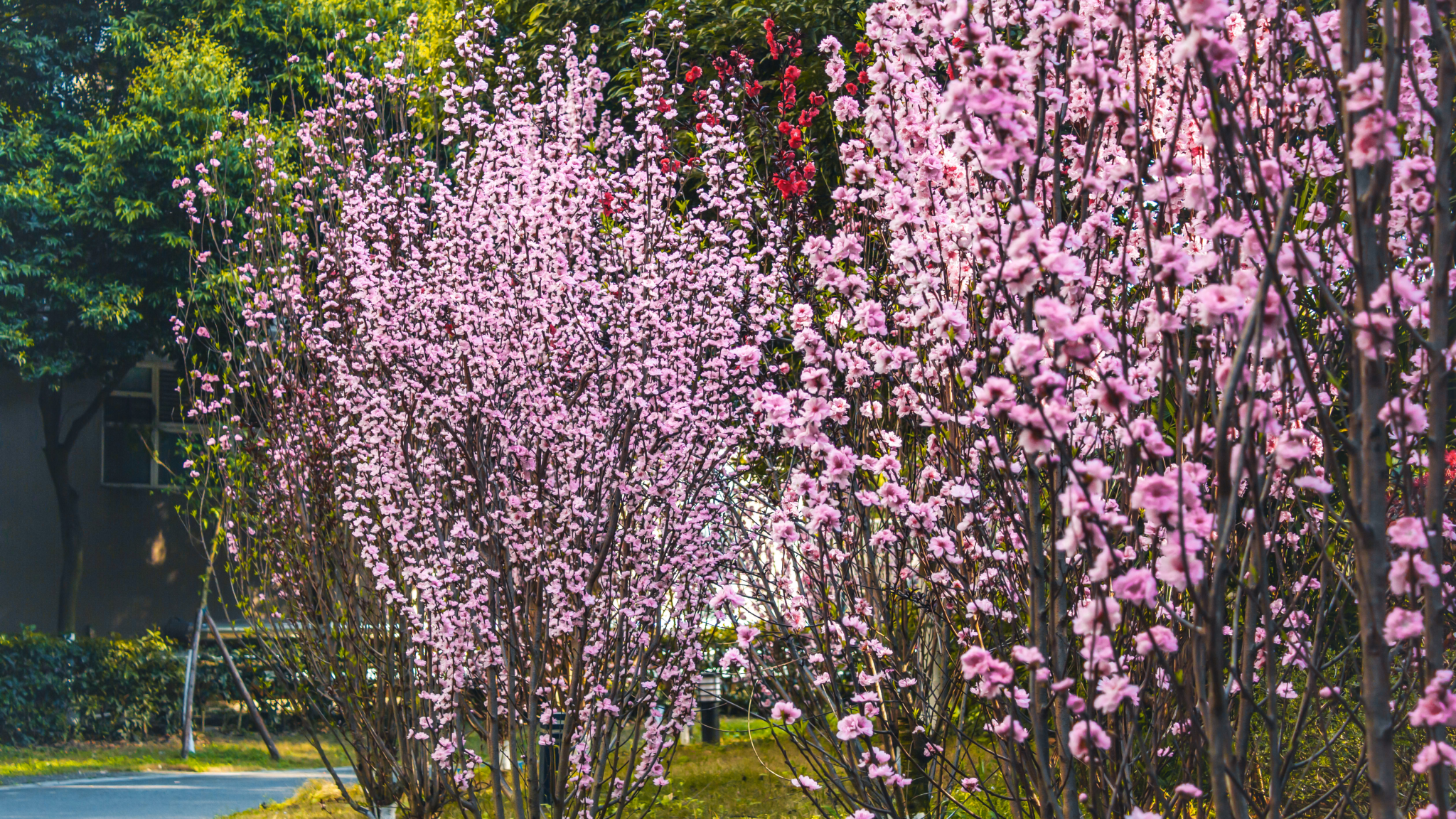 据了解,工程累计改造绿地面积约8000平方米,先后在研究生公寓、教师公寓、科创中心侧面、操场周边等区域栽种桃花、梅花、樱花、美国红枫约两百株。在景观布局上,形成了研究生10公寓背后以桃花为特色的“桃花岛”,研究生11公寓后方以红梅为特色的“梅花桩”,科创中心侧面“樱花路”以及七教干道旁以巴西野牡丹球为特色的“牡丹亭”景观区。另外,还对校园内整体景观及缺失苗木进行打造及补种,共计栽种天竺桂等各类乔木126株,各类灌木2000余株、竹类200余丛,地被植物1000余斤/盆。师生反馈显示,这些景观的建成,不仅提升了学习生活品质,更增添了归属感,成为了校园热门打卡点。