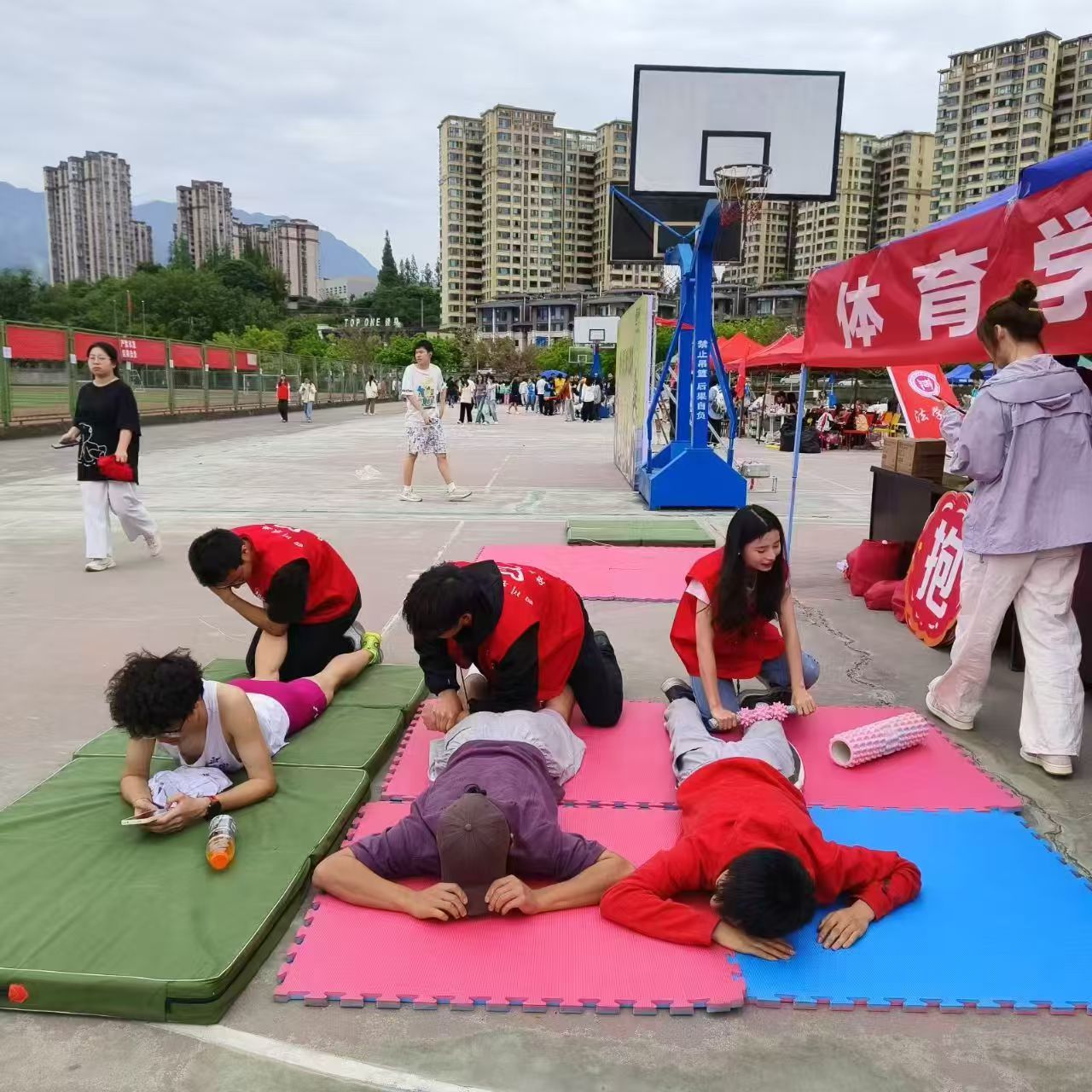 针对学生群体普遍存在的运动损伤预防意识薄弱、赛后恢复知识不足等问题,体育学院组建起一支由132名师生构成的"运动加油站"志愿服务队,在篮球场设置4个专业服务点,构建起覆盖赛前指导、赛中保障、赛后恢复的全方位服务体系。