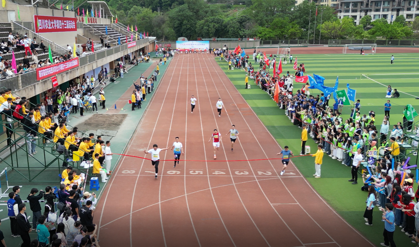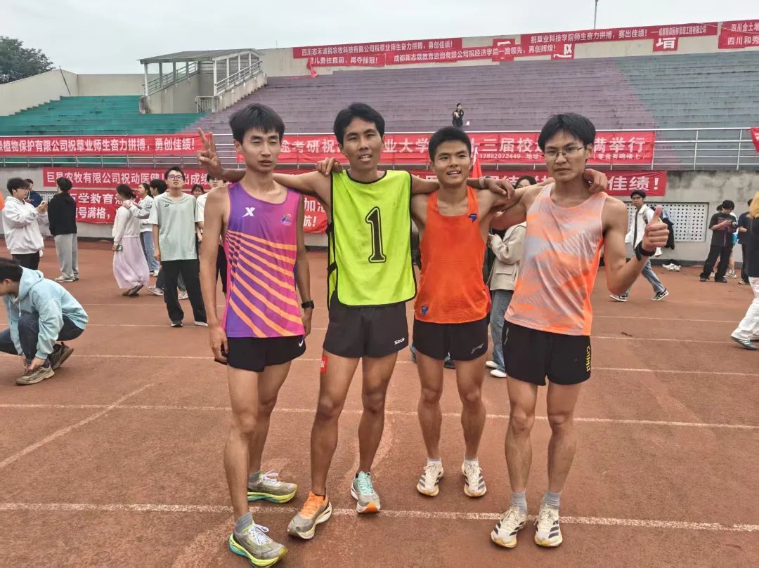 4月26日上午成都校区田径赛场见证了历史性时刻。在男子5000米决赛中,资源学院李晓昀以16分11秒的成绩率先冲线,紧随其后的园艺学院余彦儒(16分28秒)、经济学院杜云川(16分31秒)、农学院郝剑(16分39秒)纷纷打破校纪录,创造了校运会5000米四连破的历史。