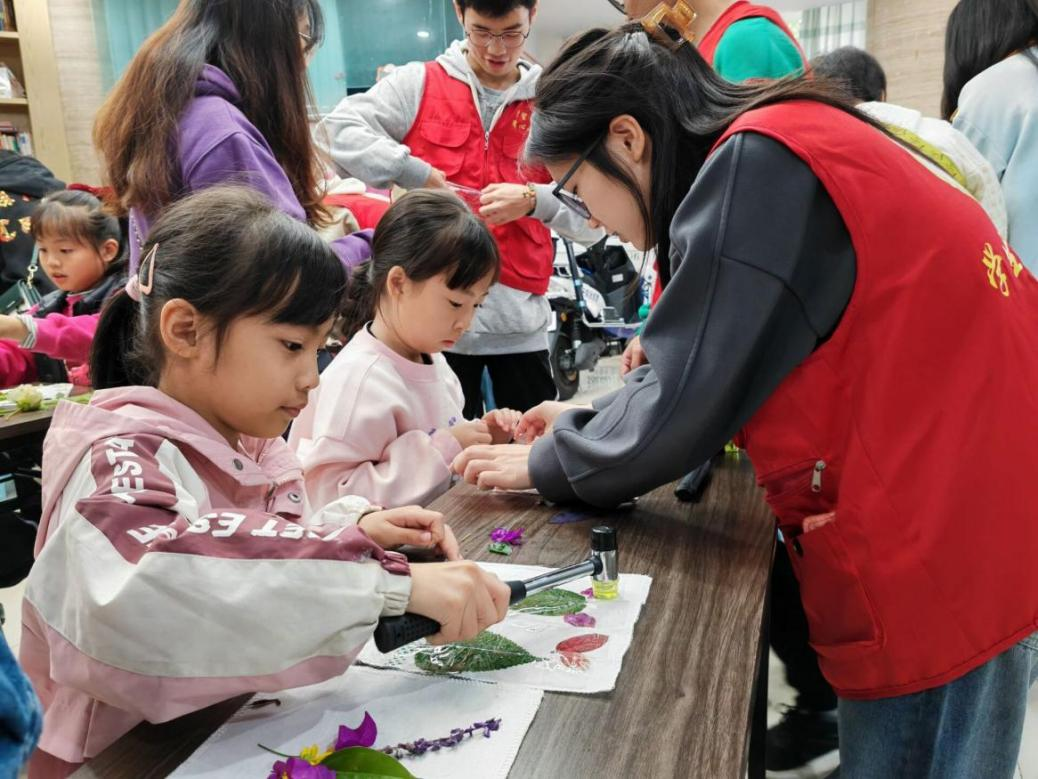 为弘扬中华优秀传统文化,由四川农业大学学生爱心站牵头,联合学生手工协会等社团精心打造的非遗文化进社区系列课程,近日在花都社区小朋友们的欢声笑语中圆满完成。团队成员于2024年10月开始,6个月间走进20余个社区开展漆扇、拓染、纸鸢、剪纸、中国结制作等十余类非遗手作体验课程,吸引3000余人次参与,让传统技艺在沉浸式体验中焕发时代新机。